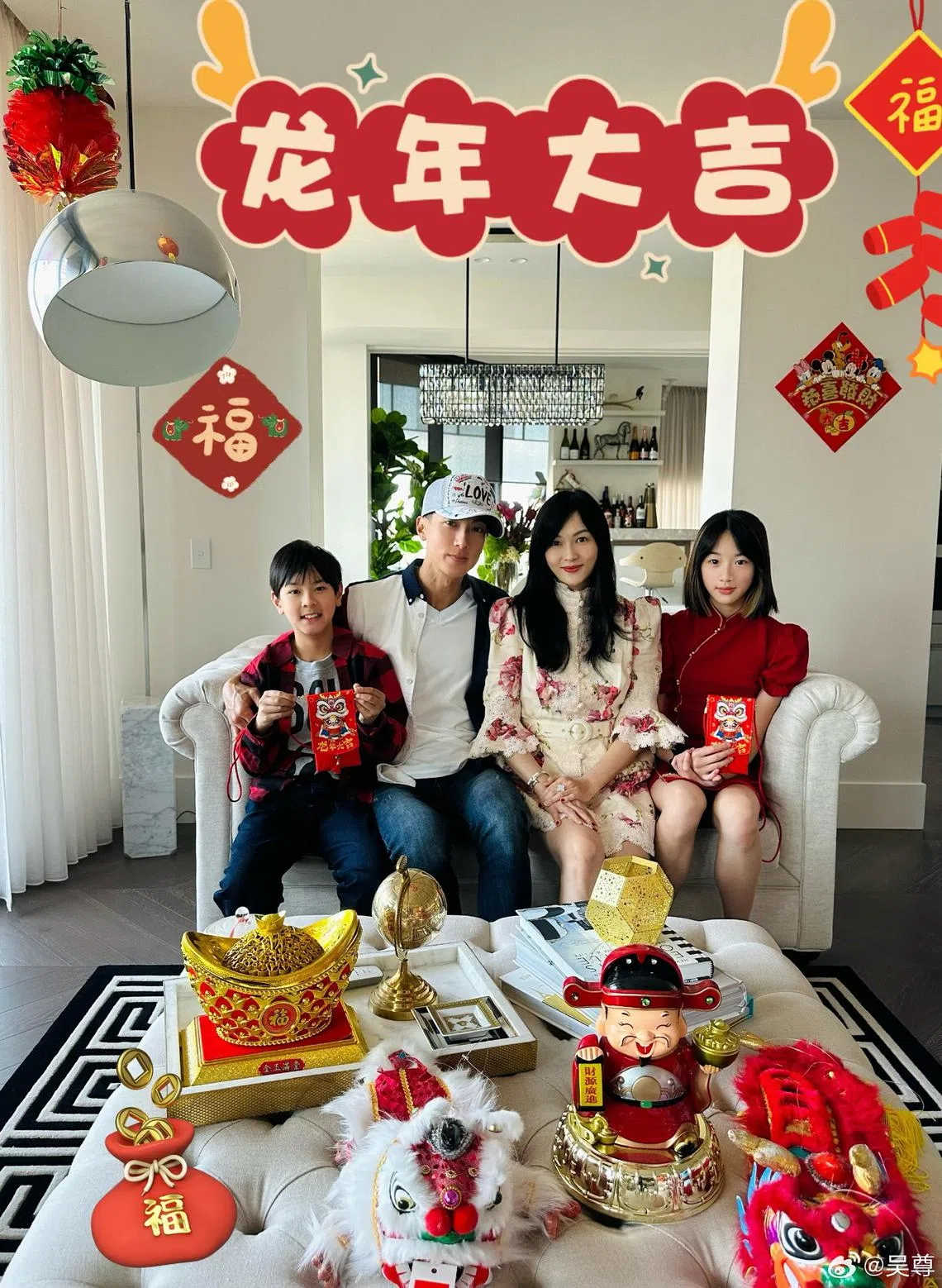 Wu Chun with his wife Lin Liying and children Neinei and Max.