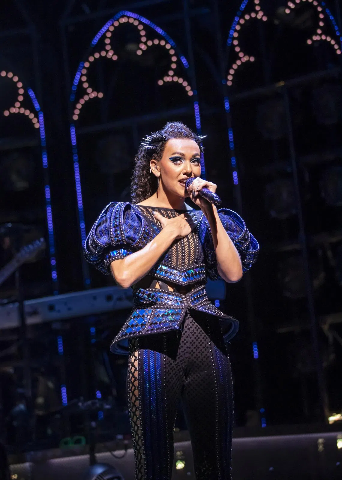 Her pink high ponytail seemed to be a reference to American superstar Ariana Grande – who, according to a note in the programme, partly inspired the character’s presentation.