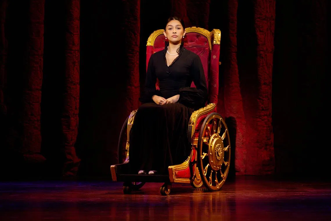 The character Nessarose (played by Tasmania native Chelsea Dean) in Act 2 is shown dressed entirely in black.