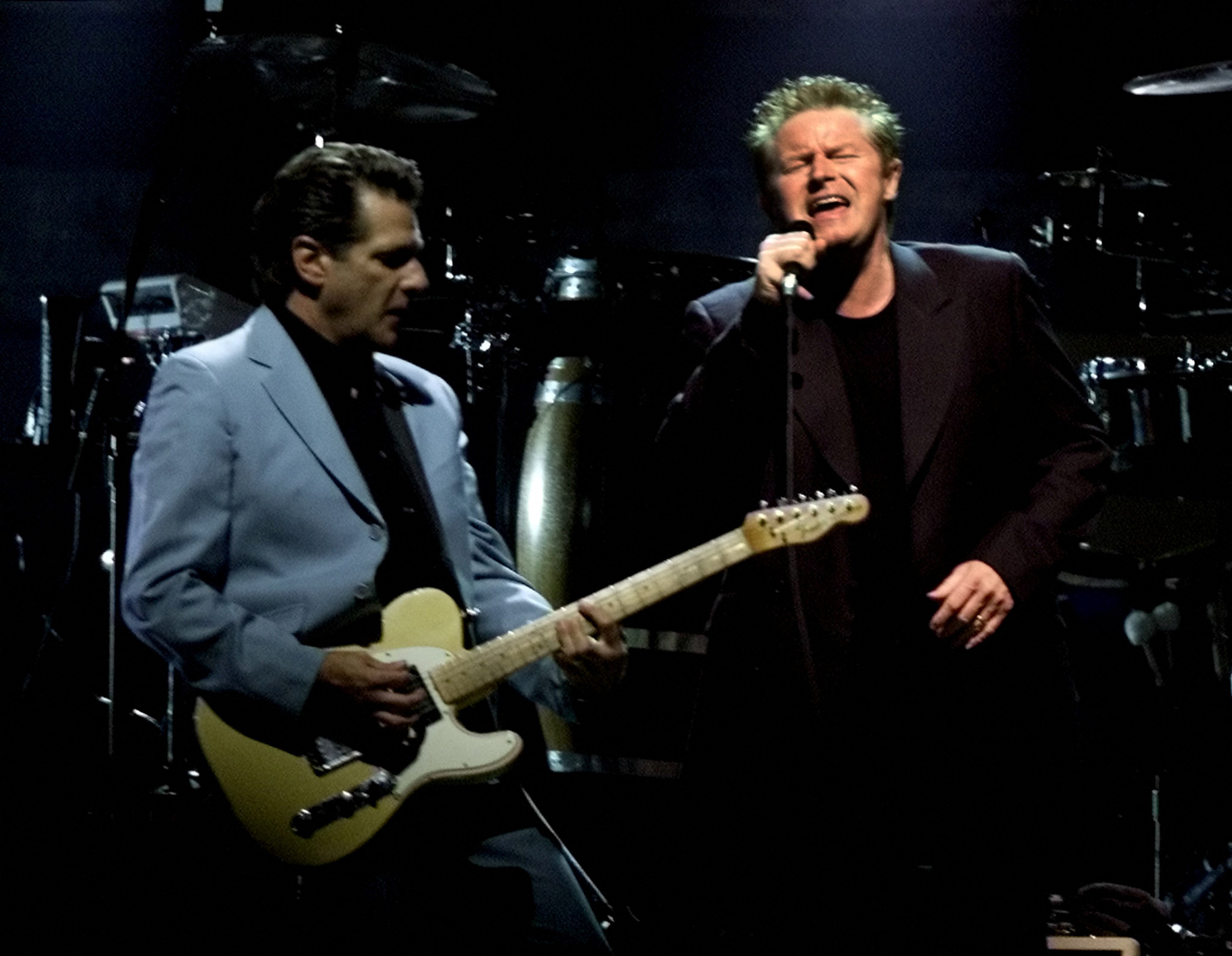 Glenn Frey (left) and Don Henley of the legendary rock band The Eagles at the American Airlines Center in Dallas, on July 28, 2001.