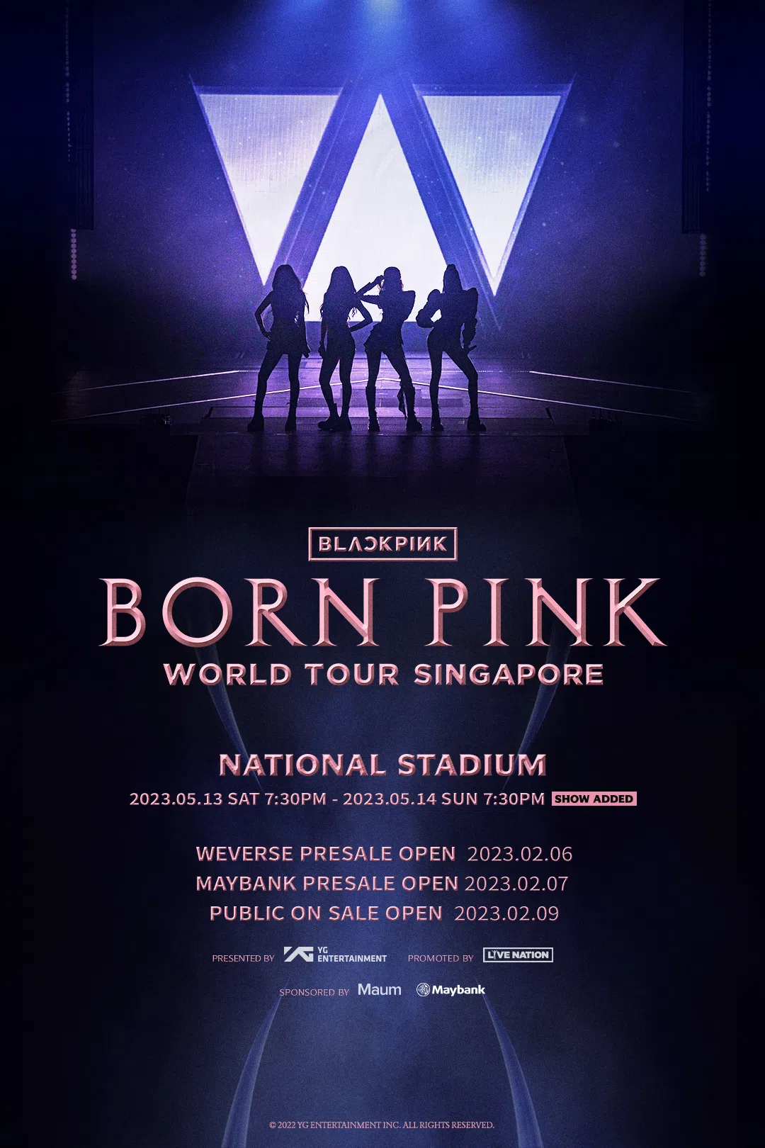 Pre-sale for Weverse members begins on Feb 6, from 10am until midnight. Visit www.livenation.sg/blackpink2023