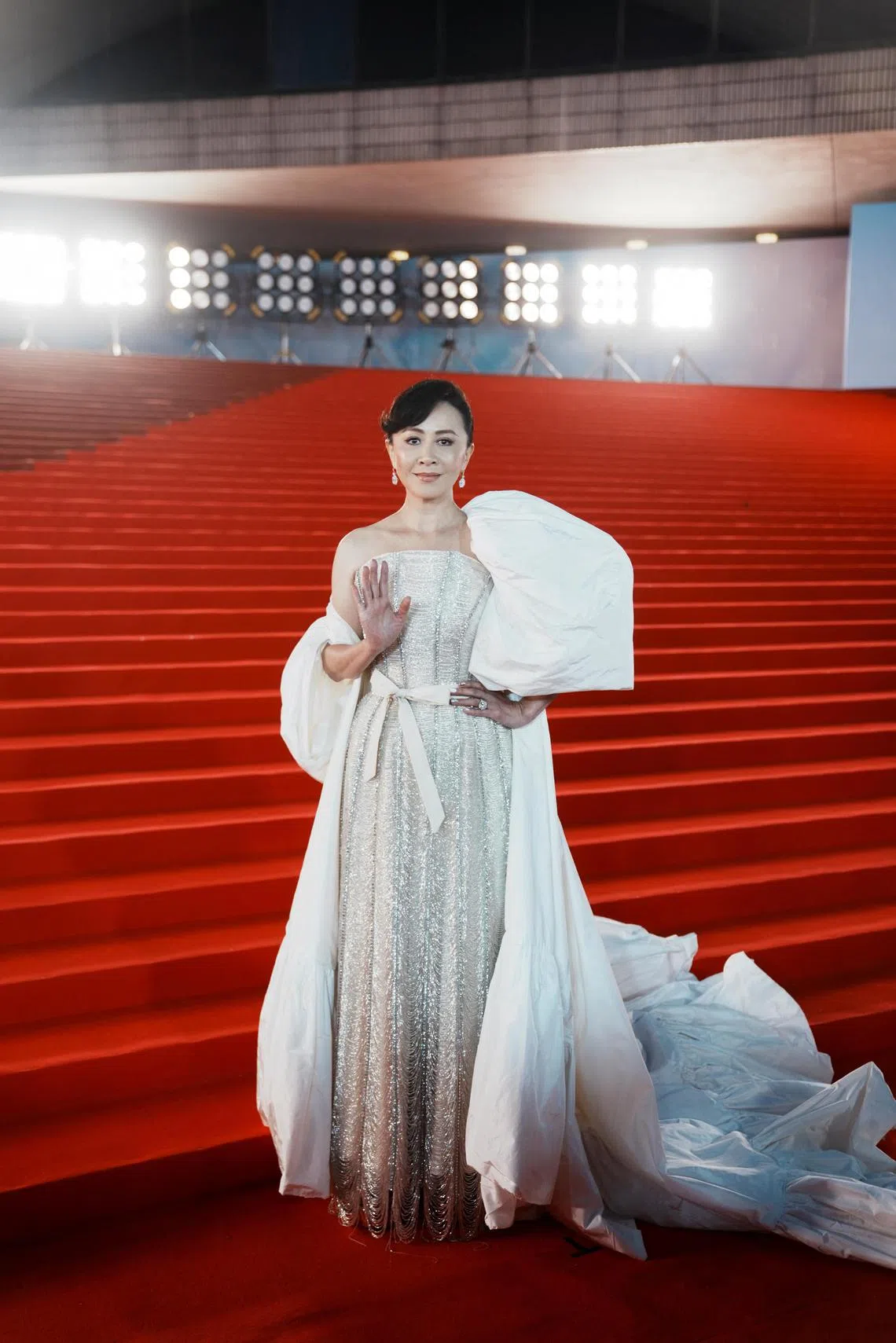 Actress Carina Lau on the red carpet during the 42nd Hong Kong Film Awards in Hong Kong on April 14.