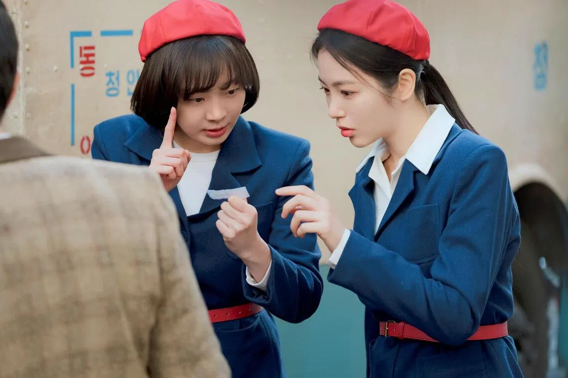 Kim Da-mi (left) and Shin Ye-eun play bus attendants in A Hundred Memories.