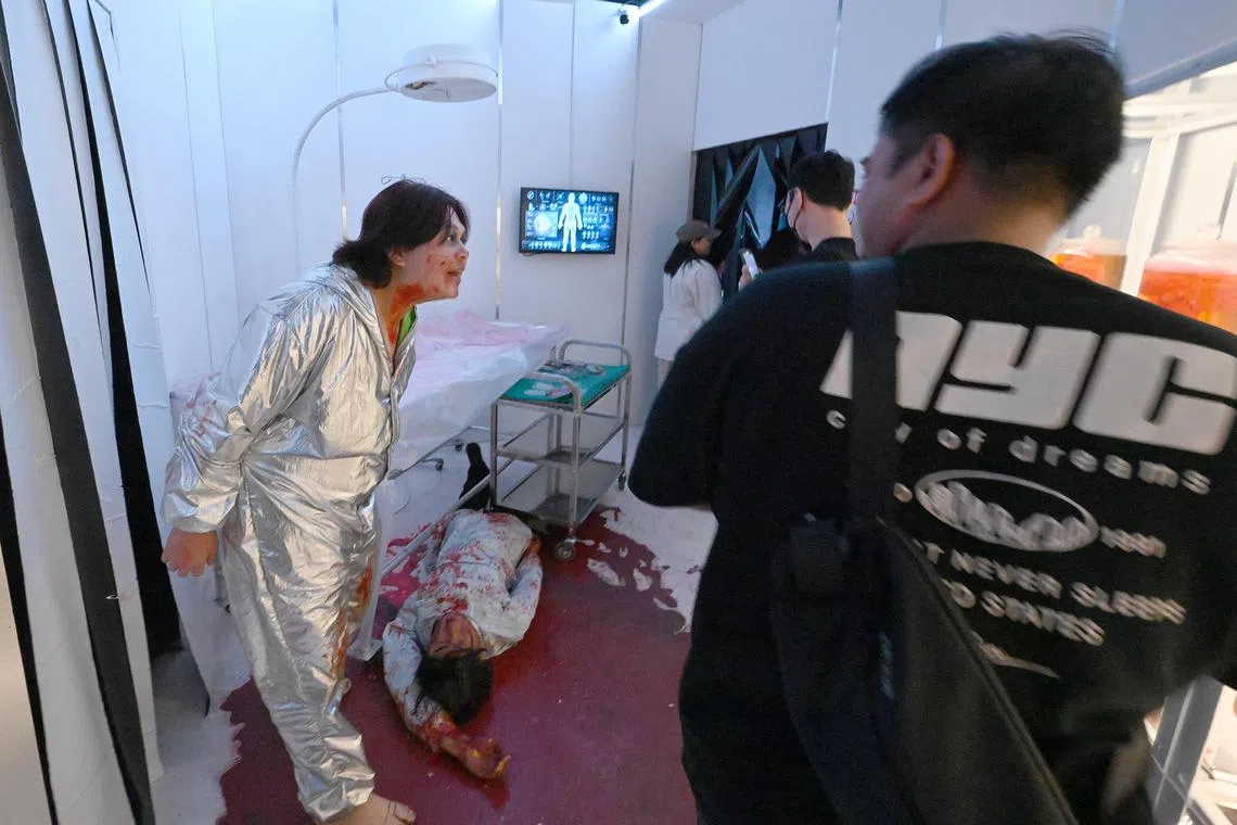 Mr Haziq Surajan, 37, art director of entertainment at RWS, said: “We really wanted to create variety in the rooms that guests go through, and the graphic novel provided a great starting point. So we start with the vastness of the grand hall, and it gets deeper, darker and more gruesome.”