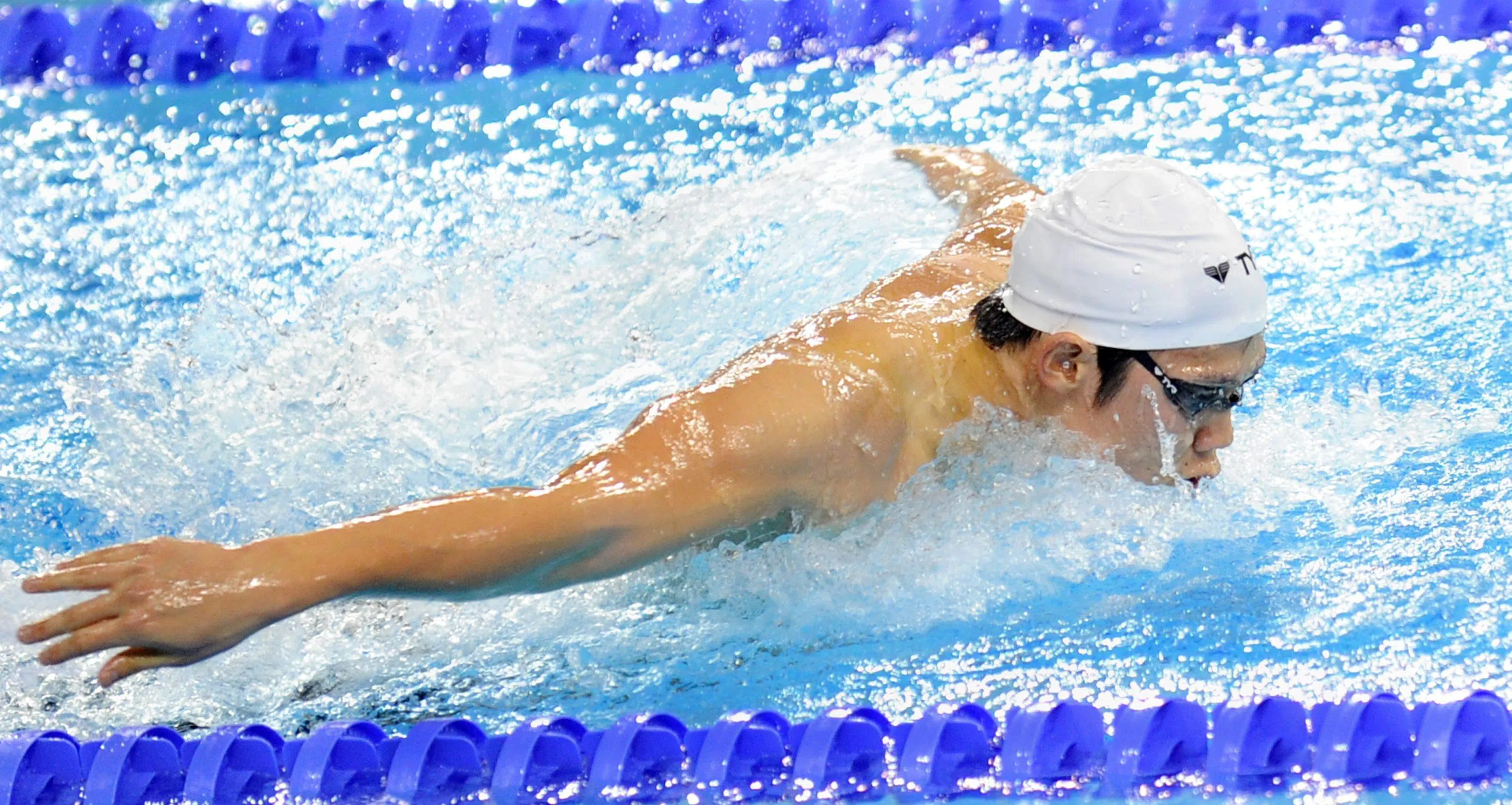 Former national swimmer Nicholas Tan swims the butterfly leg of the 4X100m medley relay final at the Asian Games in Guangzhou, on Nov 18, 2010.