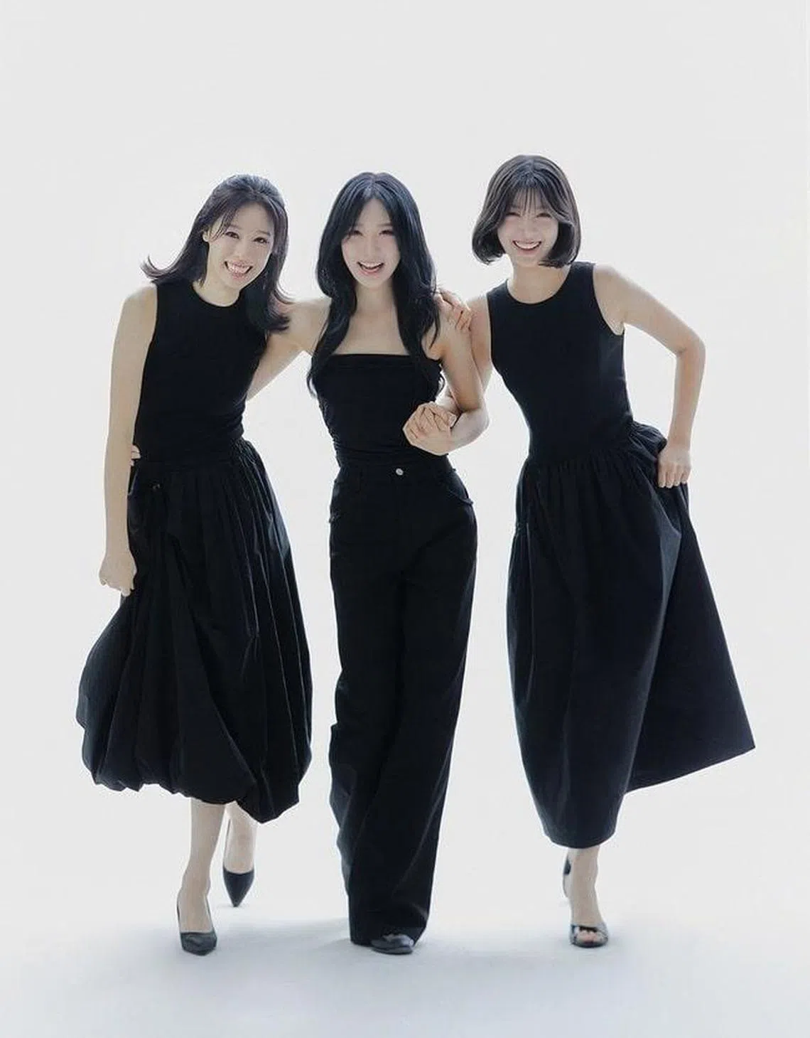 K-pop girl group Fifty Fifty’s former members (from left) Sio, Saena and Aran.