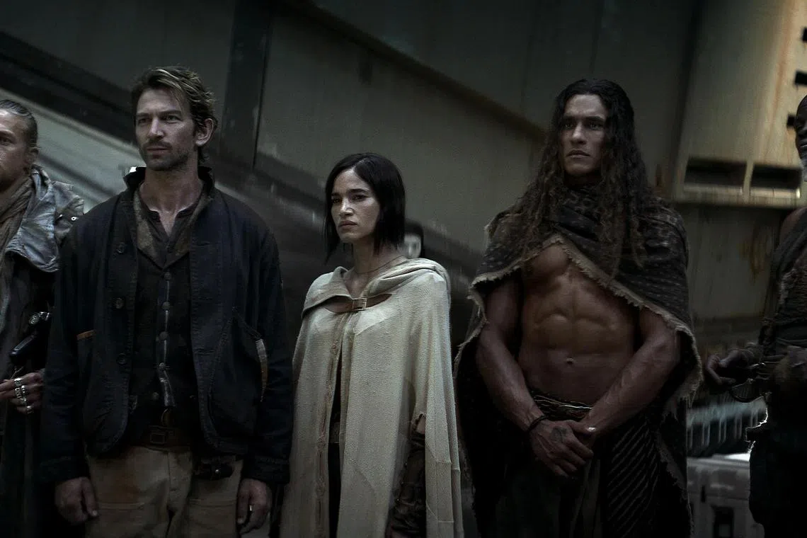 (From left) Charlie Hunnam, Michiel Huisman, Sofia Boutella, Staz Nair and Djimon Hounsou in Rebel Moon.