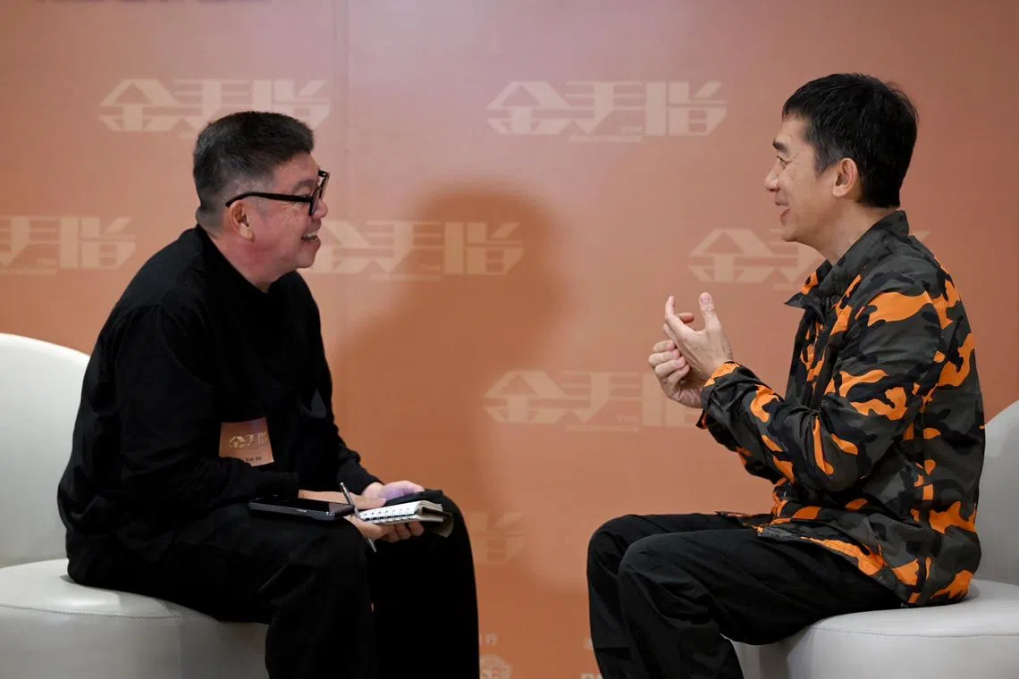 Deputy Life editor Wong Kim Hoh (left) speaking to Hong Kong actor Tony Leung in Singapore on Dec 21.