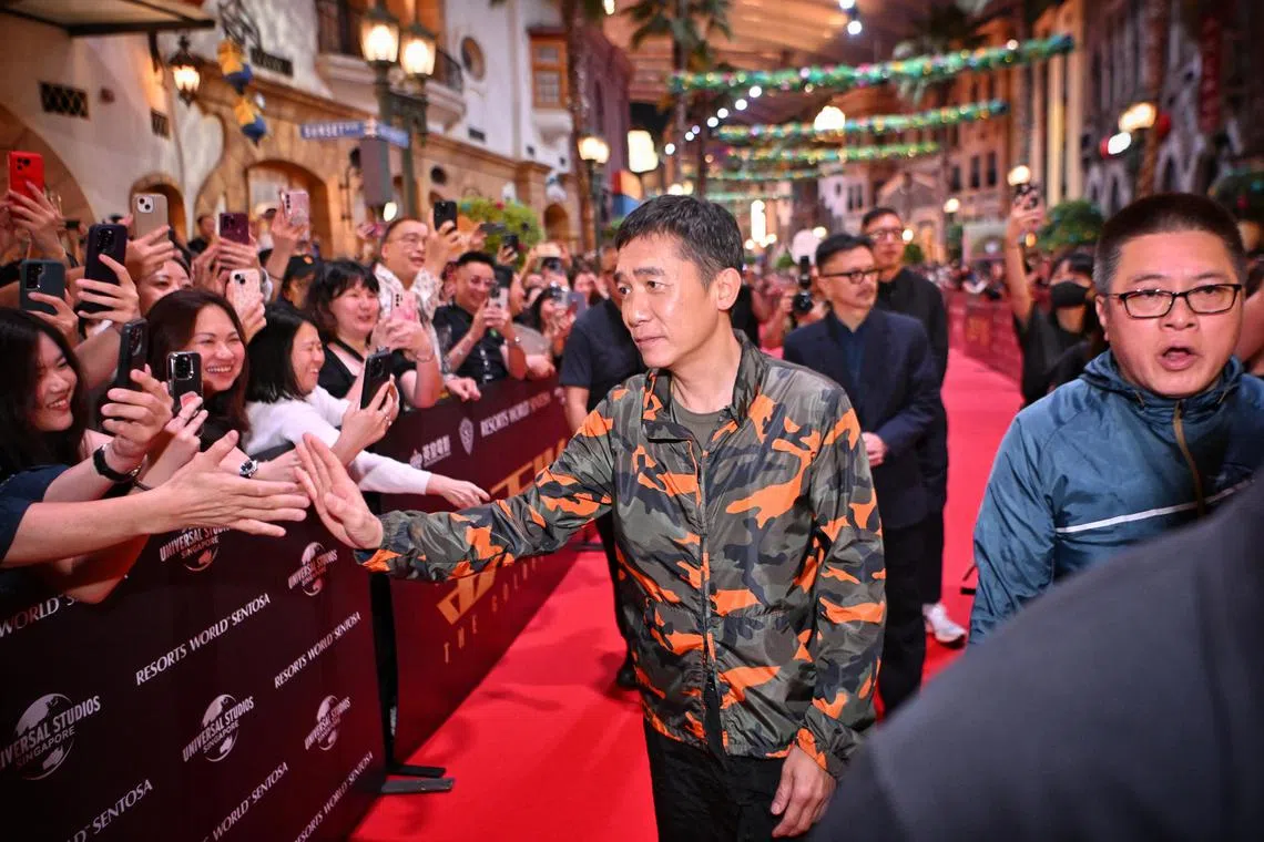 Hong Kong actor Tony Leung (centre) before the gala premiere of The Goldfinger at Universal Studios Singapore on Dec 21.