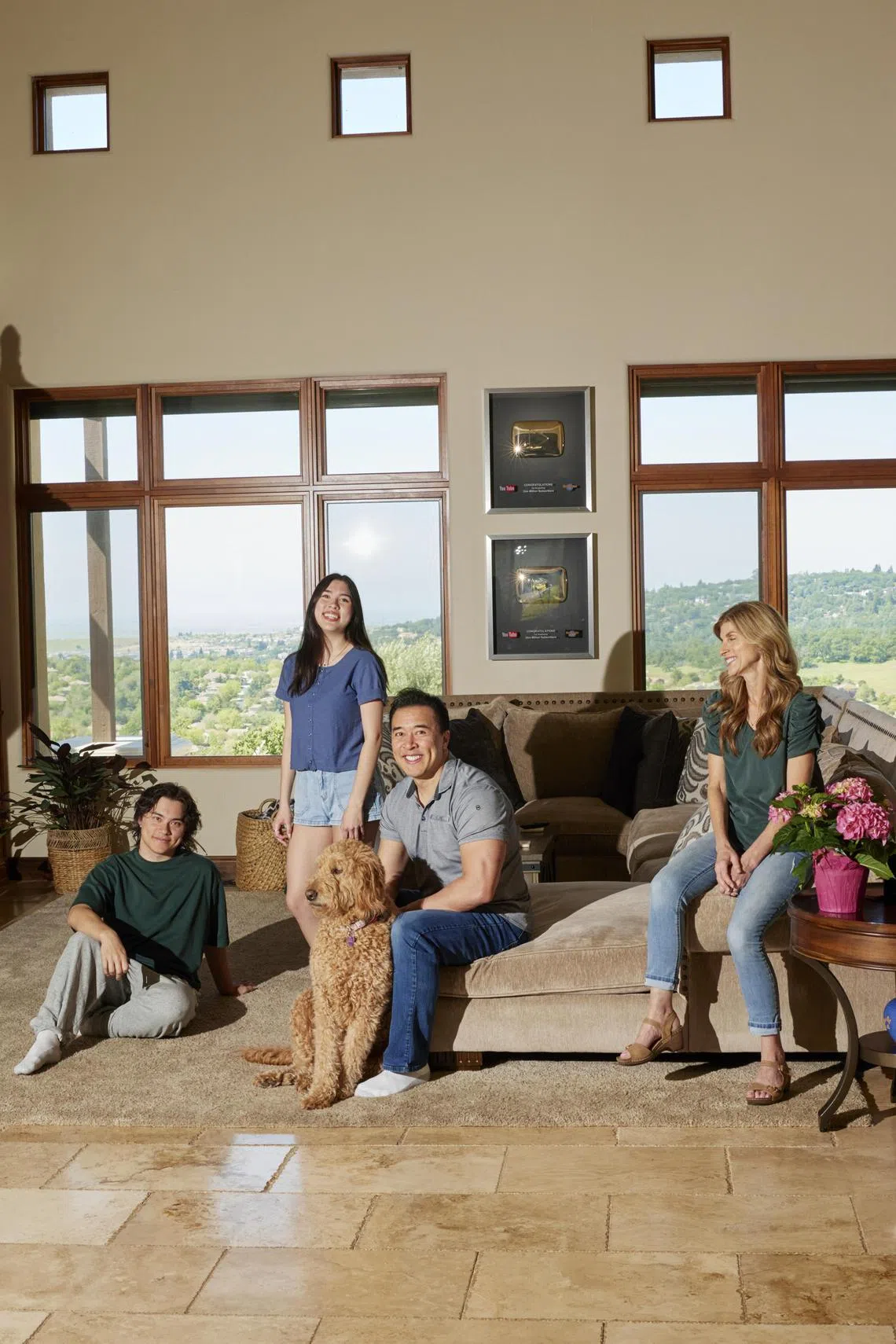 (From left) Evan Lee, better known as EvanTube; his sister Jillian Lee; his father Jared Lee; and Alisa, his mother, at their home in El Dorado Hills, California, on April 19.