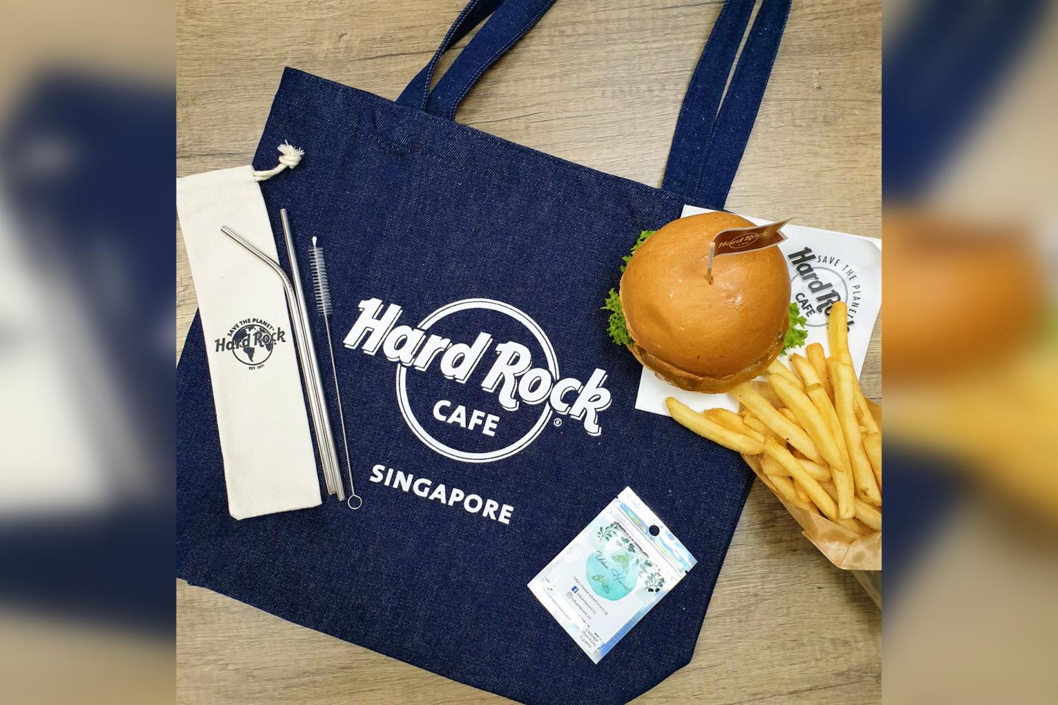 Items in the $39.95 bundle include a Vegetarian Beyond Burger, a denim tote bag and a three-piece reusable straw set. Hard Rock Cafe will donate 5 per cent of the proceeds to the Singapore Environment Council for their training and education initiatives.