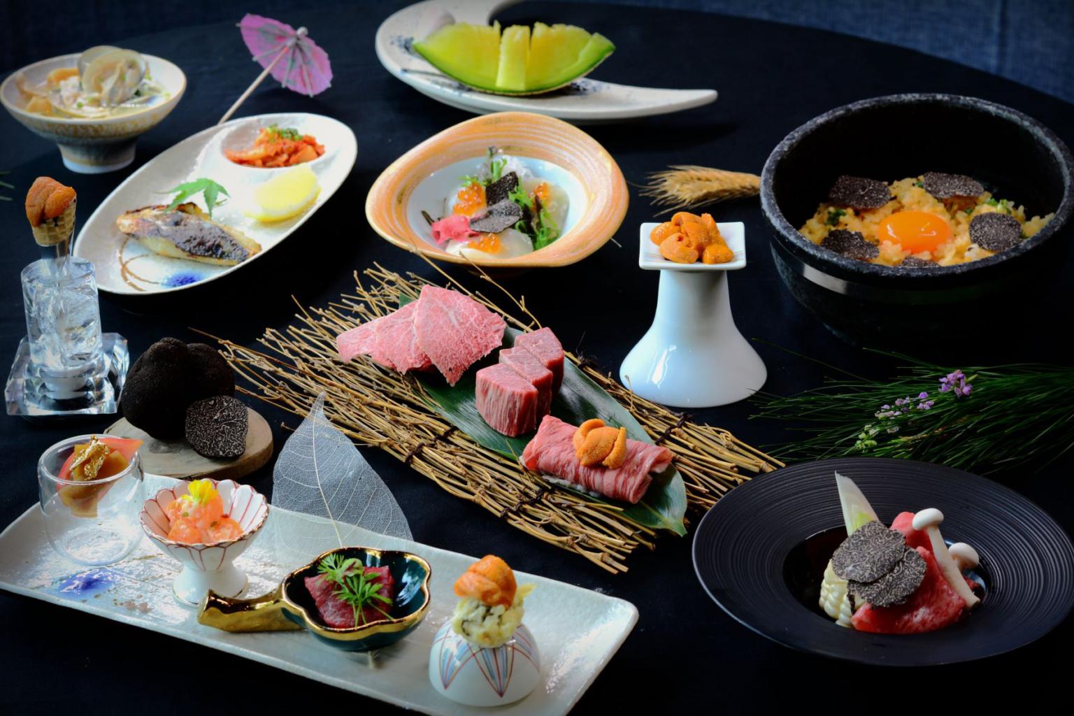 Manjimup black truffles and Hokkaido uni are the star ingredients in a 10-course omakase menu ($238++). Dishes include Yakiniku of Kagoshima Ichibo and Miyazaki Tenderloin, Olive Beef Uni Roll (Sanuki wagyu is showcased), and Ishiyaki Truffle Uni Rice (Hokkaido uni mixed with Hokkaido white rice in a hot stone bowl).