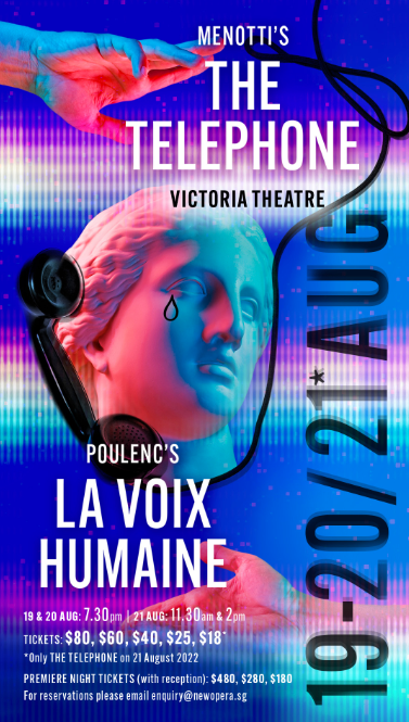 The productions in this double-bill event by New Opera Singapore (NOS) are commentaries on modern-day communication and relationships. This is NOS's largest production in 2022 as they make a return to the live stage.