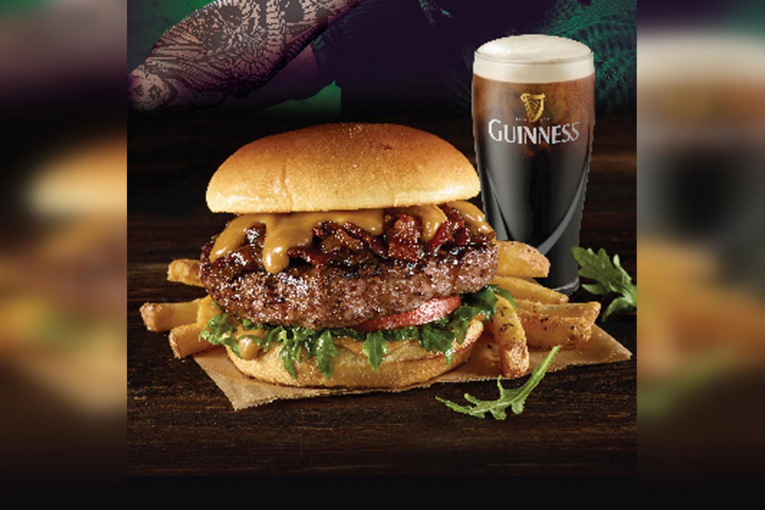 Order the Saint Patrick's exclusive, Guinness Bacon Cheeseburger ($29.95) - topped with Jameson bacon jam and Guinness cheese sauce - and enjoy a complimentary pint of Guinness.