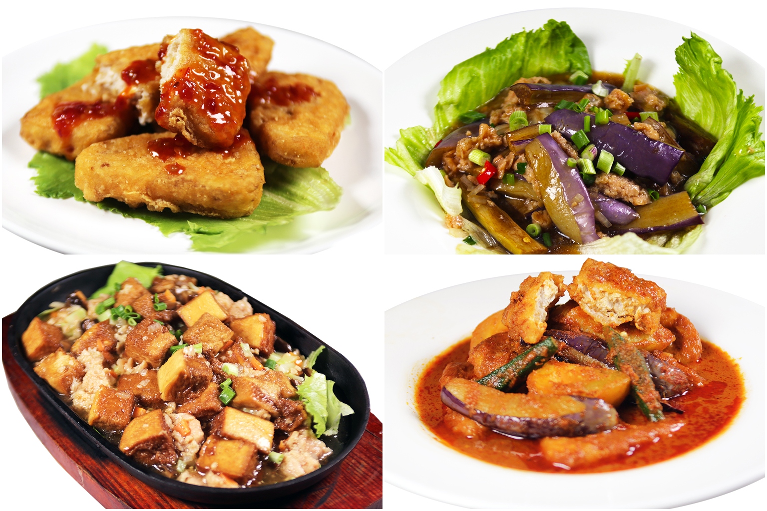 Gu Ma Jia has created vegan options using Gardein, Heura, OmniMeat and Beyond Meat.