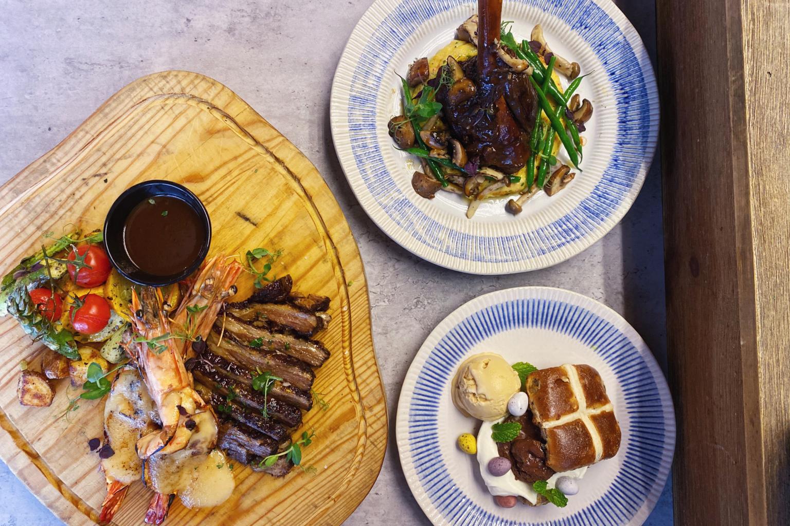 Feast on Grilled King Prawns glazed with cheesy fontina sauce ($45.95), Braised Spring Lamb Shank ($38.95) and Decadent Stuffed Hot Cross Bun ($15.95). Diners also stand to win prizes by taking part in a contest where they have to guess the number of Easter eggs.