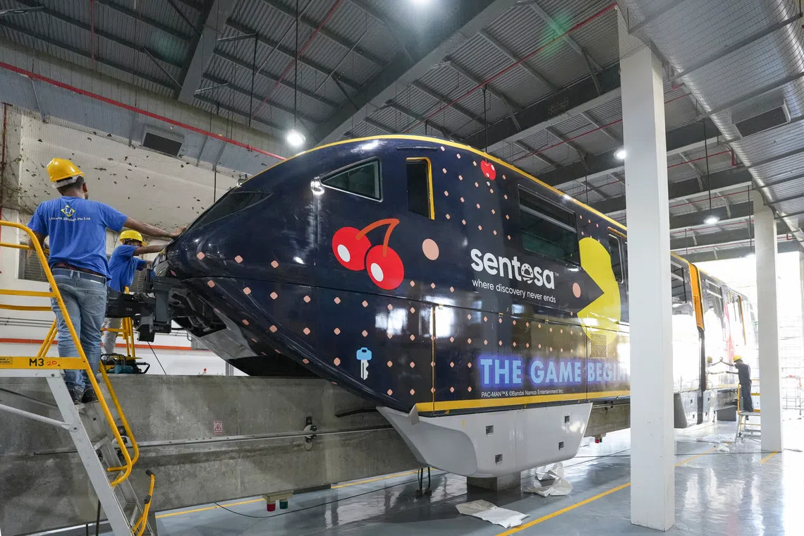Visitors entering Sentosa can begin the experience when they board the Pac-Man-themed Sentosa Express train.