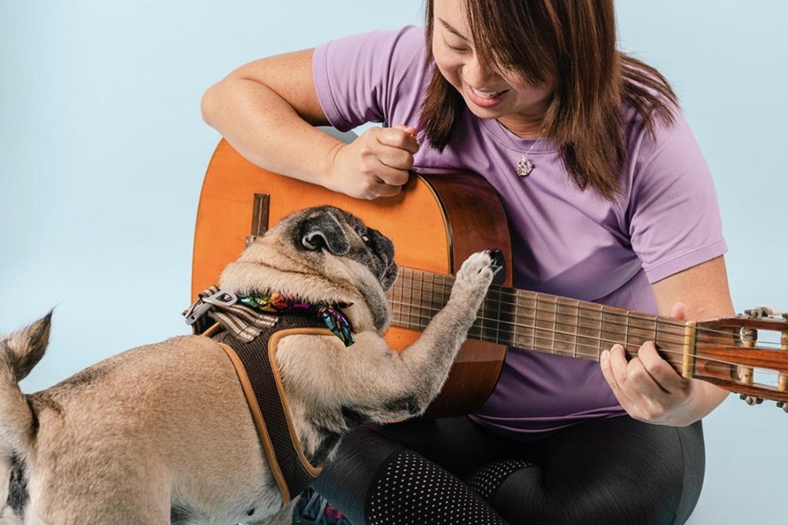 "I love music, so I taught the dogs how to play different instruments, and that was really fun because some of the families I know play the tambourine or jingle with their furkids," Ms Chia says.