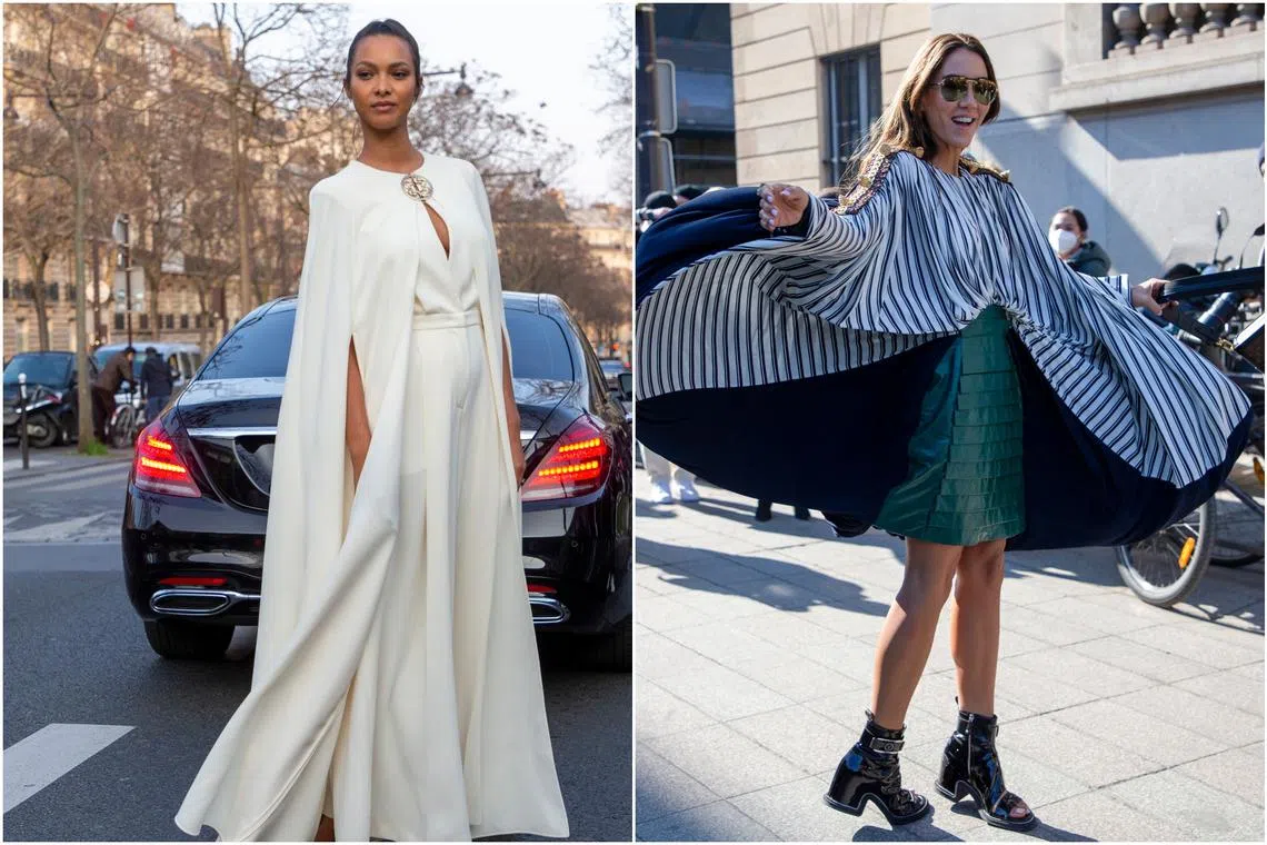 You do not have to be a superhero to wear a cape. As the year-end party season approaches, take the opportunity to play up the drama. An easy way to dive into the trend is to pick a top with a built-in cape. Go for sophistication in an all-white ensemble with a long cape secured with an elegant brooch. Throw a feathered cloak over a cropped tank top and skin-tight pants for a bold and fantastical spin that is sure to turn heads.