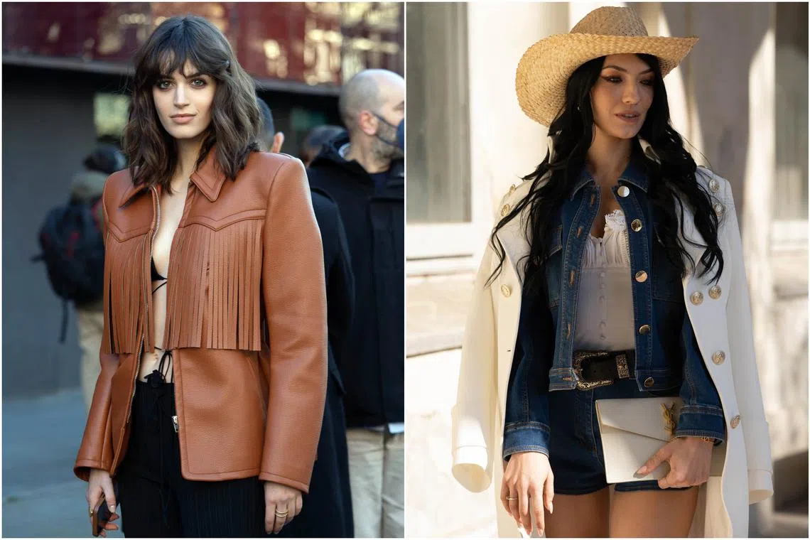 Cowgirl couture is riding high among the street set this season. Take a leaf out of their books and get rodeo-ready with fringing on leather jackets, paisley scarves, shearling vests, denims, Western boots and lots of wide-brimmed Stetson hats. To keep it city chic, pick just one or two key elements and balance the rugged, outdoorsy vibe with sharp, fitted silhouettes and sleek accessories like an envelope clutch.