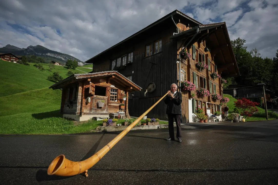 Next up is the rustic mountain village of Adelboden, where 78-year-old alphorn-maker Johann Schranz demonstrates how he crafts the instrument at his workshop in his quaint Swiss chalet home.