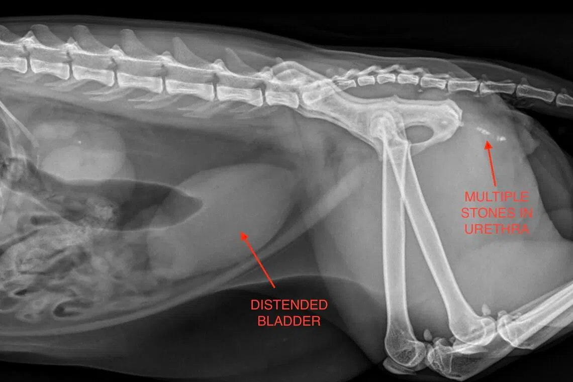 Urinary stones: Cats can develop stones in the kidneys or bladder. Severe inflammation and muscle spasms also cause the urethra to tighten and close, preventing urination.