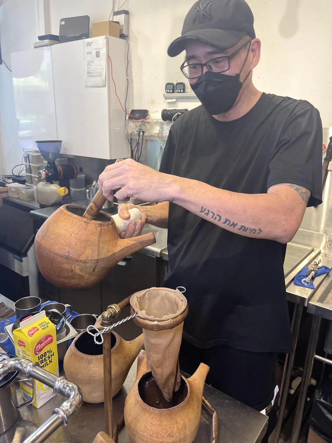 Over at Nanyang Kopi Kia Claypot Coffee at International Plaza, co-owner and coffee master David Wu, 47, draws customers with his style of brewing coffee, with clay pots traditionally used for brewing Chinese medicine.