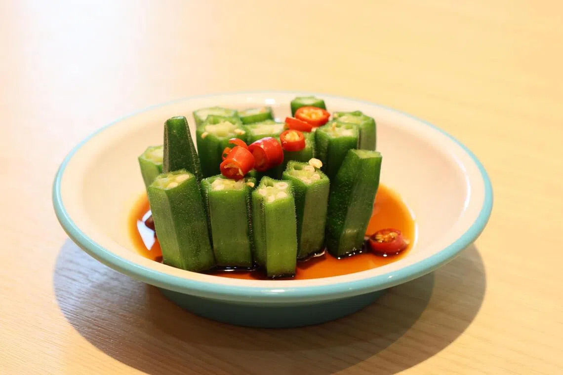 Vegetable dishes are treated with the same care. The Stir-fried Lotus Pond ($2.90) delivers a clean crunch from lotus root, snow peas, carrot and woodear mushroom. The Cold Okra Salad ($1.90) is excellent – lightly blanched okra, cool and snappy, dressed in a subtly sweet soya-based sauce with no raw edge.