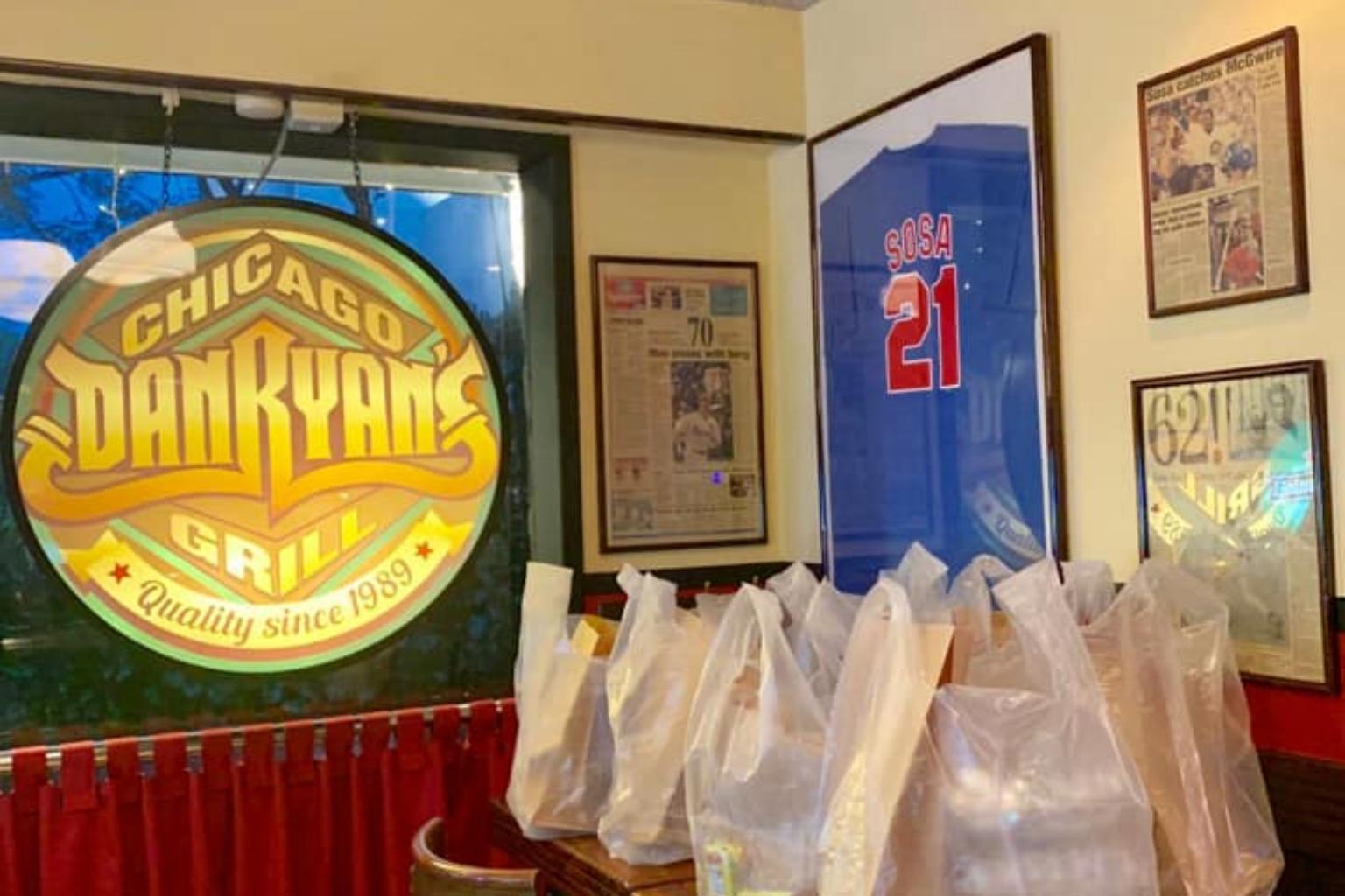 Its design was a throwback to a 1940s bar and grill in Chicago, with vintage light fixtures, posters, a mural depicting Chicago nightlife, and an antique train circling above the bar.