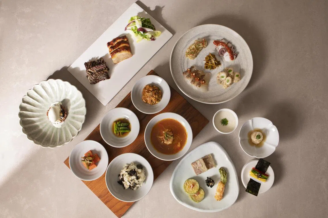 In July, he opened the plush 88-seat Ureshii at The Arts House, spending $2 million on the fit out. The menu ratio is flipped at the new restaurant – it is 70 per cent Korean and 30 per cent Japanese. Some of its signature offerings include Gujeolpan ($38) from Joseon court cuisine, in which diners wrap sliced vegetables and meat in pancakes and dip them in a pineapple and pine nut sauce. There is also Sesame Oil Octopus ($58), featuring steamed Hokkaido octopus drizzled with artisanal Korean sesame oil; Deulgireum Maemil Gooksu ($18), buckwheat noodles tossed with artisanal Korean perilla oil; and Ureshii Tteok-Galbi ($38), minced beef rib marinated in artisanal soya sauce and grilled.