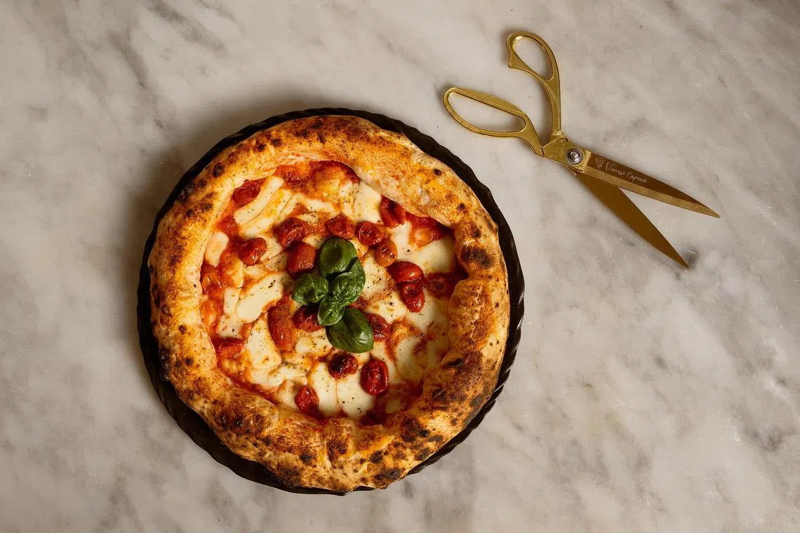 A pair of gold scissors is at every table at Vincenzo Capuano Singapore. Diners use it to cut into the pizza.