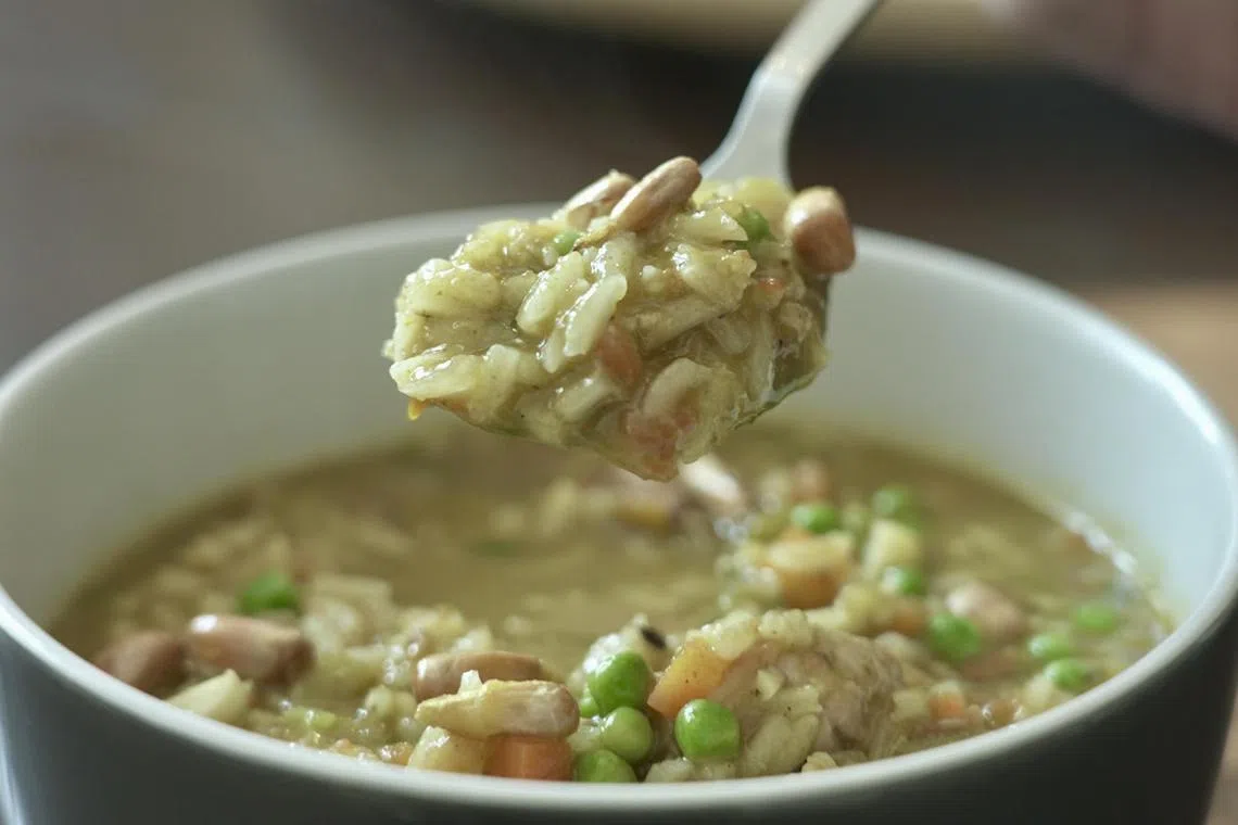 Chef Daniel Chavez's aguadito, a Peruvian coriander chicken rice soup.