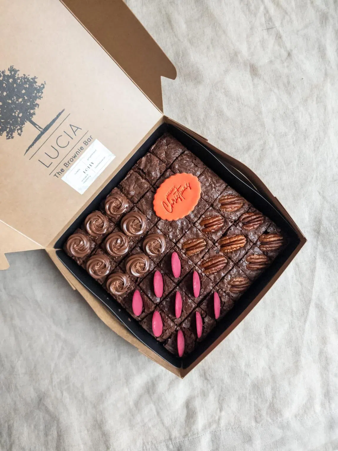 Lucia The Brownie Bar's Christmas brownie box.