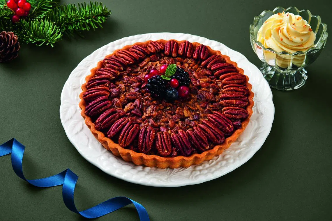 This is one guilt-free pie you can have as a meal. The buttery crust is made with low-carb, high-fibre flour from Singapore food tech company Upgrain, and loaded with miso-coated pecans. It doubles as dessert too.