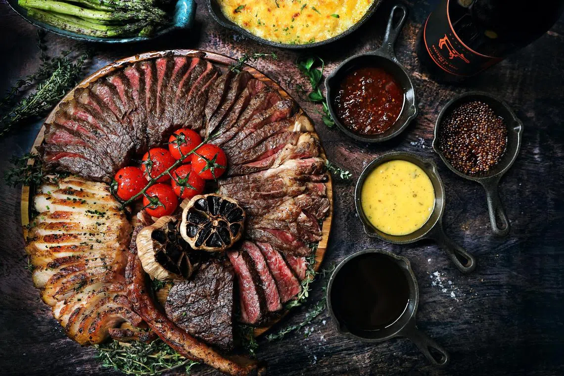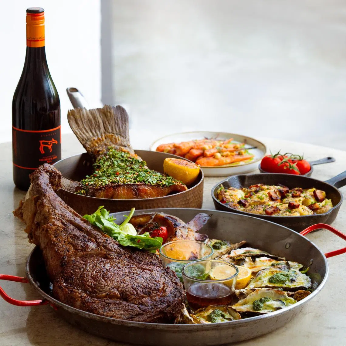 Feast on the signature aged barramundi tail (1kg), F1 wagyu tomahawk steak (1.2kg), glazed hamachi collar and baked oyster mornay (eight pieces). It is served with miso-glazed heirloom baby carrots and fully loaded smashed potatoes.