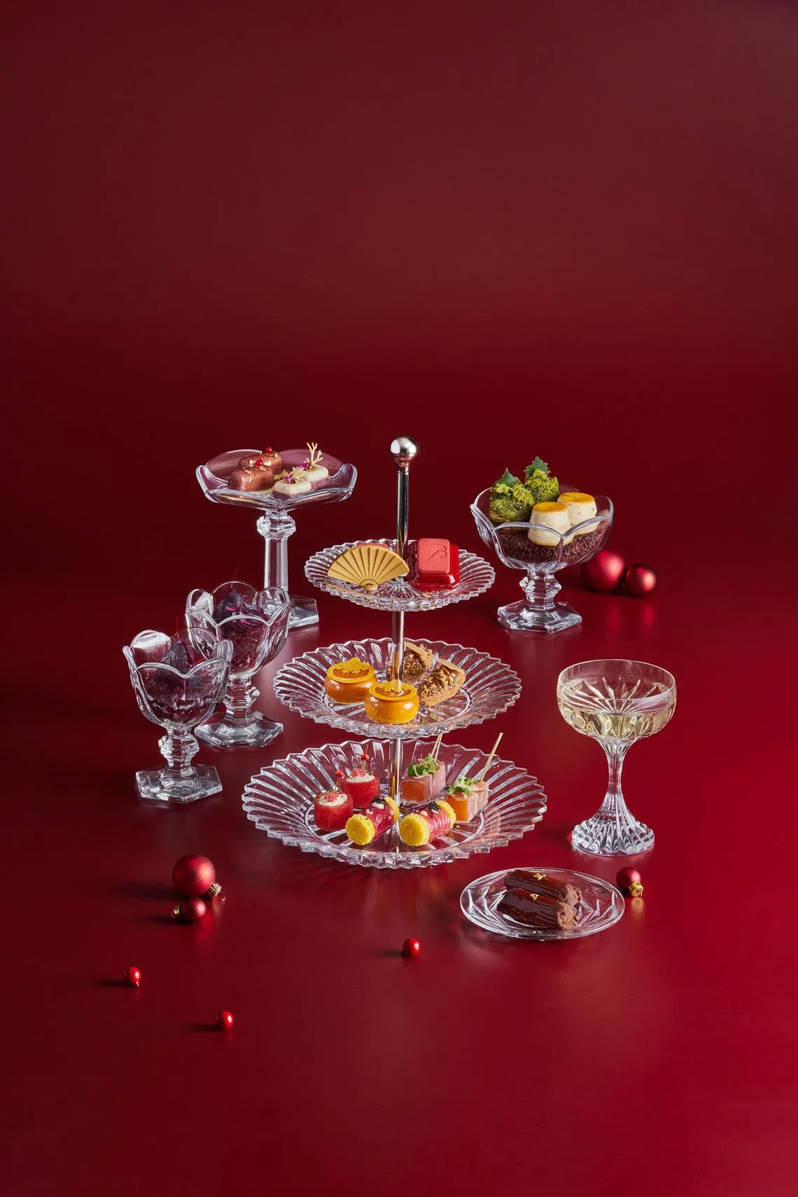 Mandarin Oriental, Singapore’s Enchanted Festive Tea is displayed on Baccarat’s crystalware.