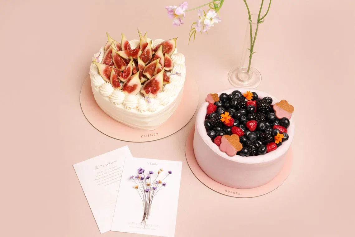The heart-shaped Honey Fig Shortcake (from $53 for a 10cm cake) comes with a sponge cake layered with a fig compote, and is covered in a mascarpone Chantilly sweetened with Tasmanian leatherwood honey and studded with chunks of fresh figs.
