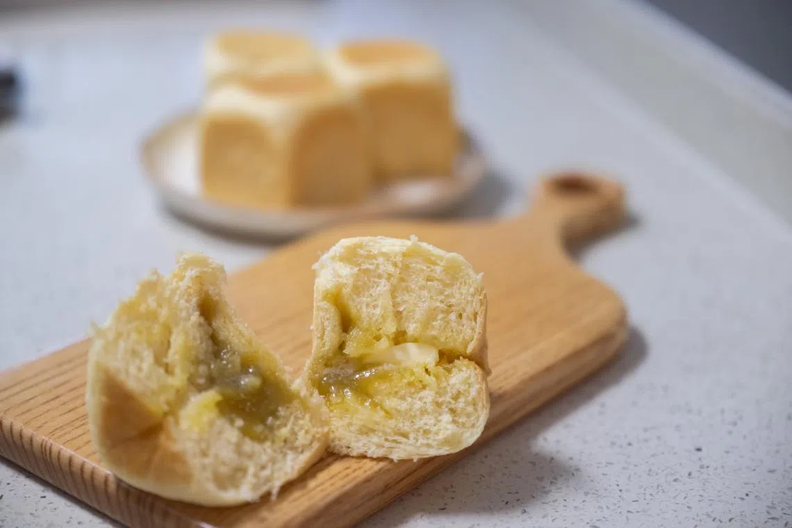 For the Kaya-pan, she suggests heating up the bread, cutting a slit on top and stuffing a piece of butter inside.