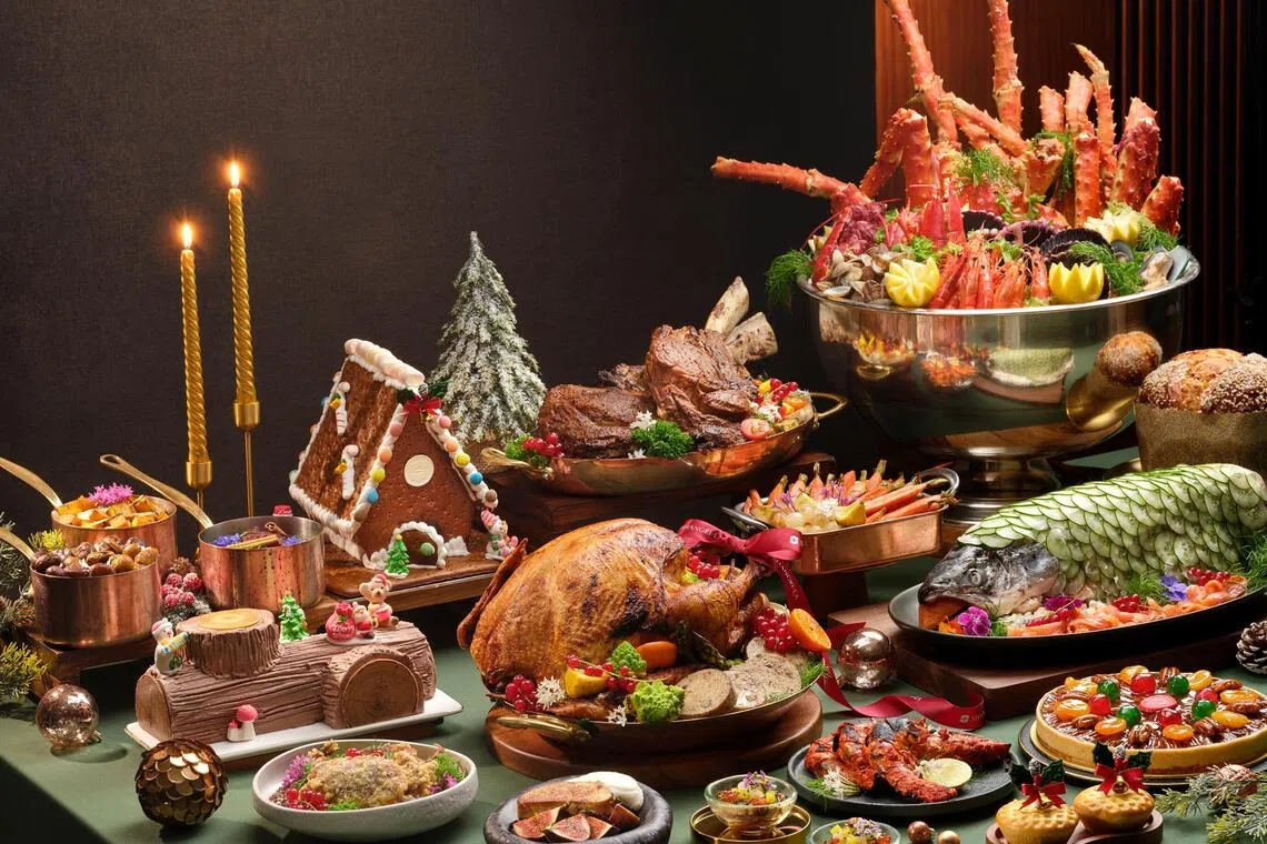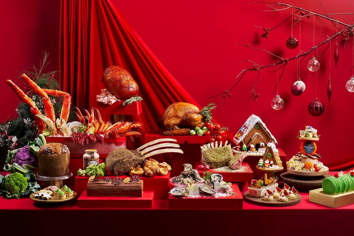 Prices, which include soft drinks and juices, start at $68++ an adult for weekday lunch and go up to $128++ for weekend dinner. Separate prices apply for Dec 24 to 28 and Dec 31.