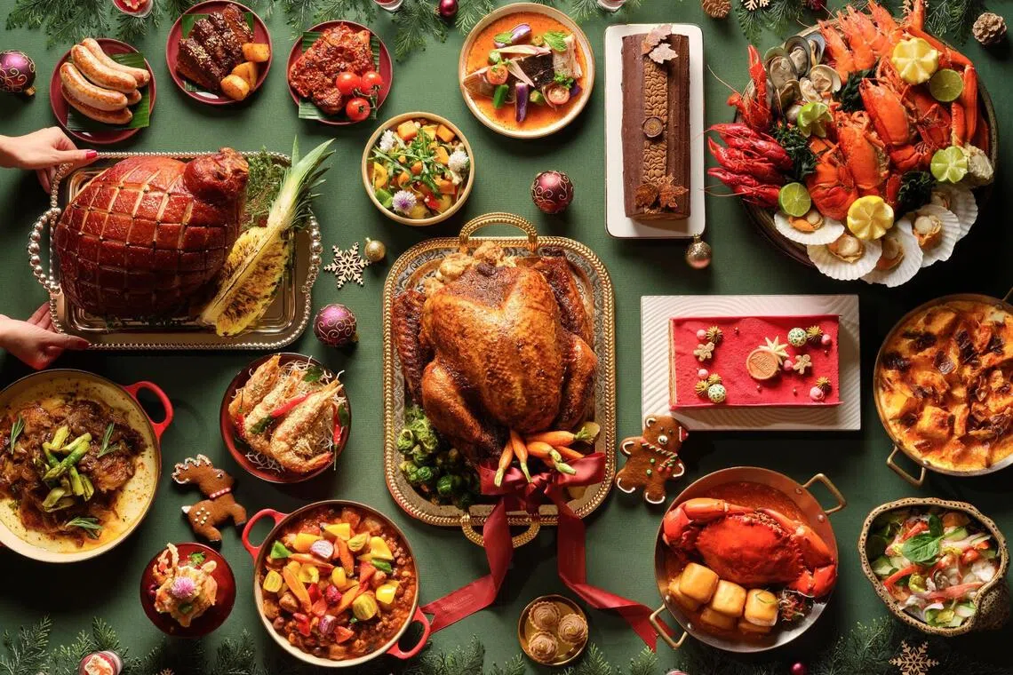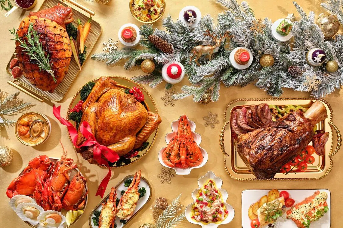 - Several restaurants feature festive buffets with turkey, ham and seafood, ranging from $68++ to $128++ at Town Restaurant, The Line, Peppermint, The Dining Room and Edge.