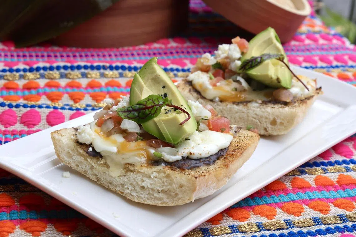 Go for the Four Cheese Molletes ($14++), an open-faced sandwich of toasted bolillo (a Mexican bread roll), spread with refried beans and topped with melted Oaxaca cheese (a white low-fat cheese), Cotija (aged cow’s milk cheese), Mexican cheddar and crumbly bits of queso fresco. Fresh slices of avocado and pico de gallo complete the sandwich.