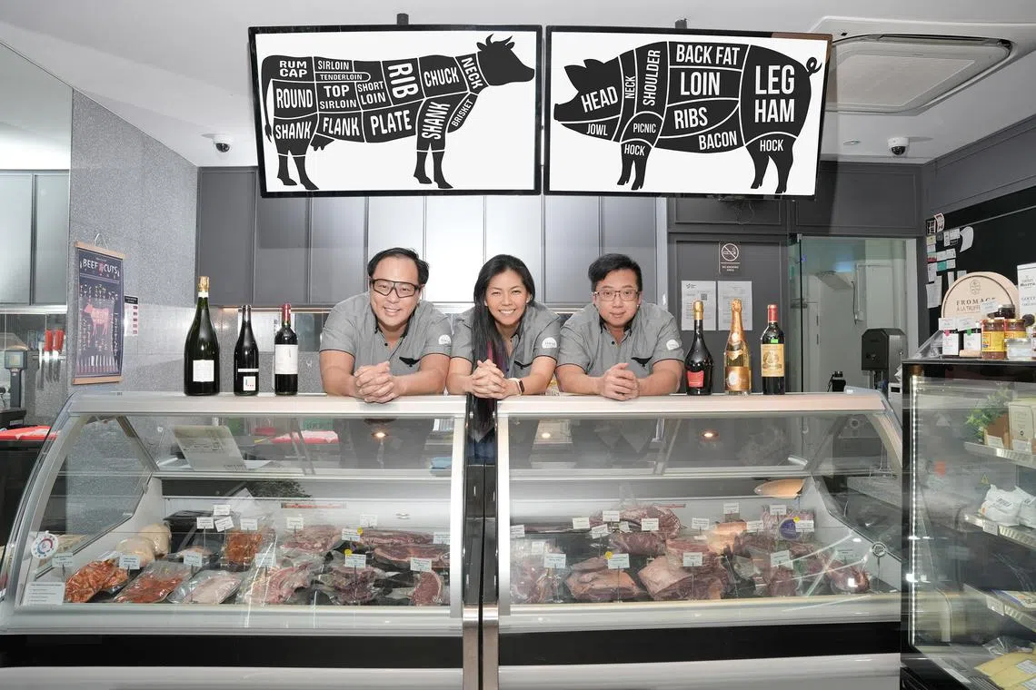 (From left) Meatkrafters' co-founders Kris Tan and Jessie Toh with their head butcher Chris Tay.