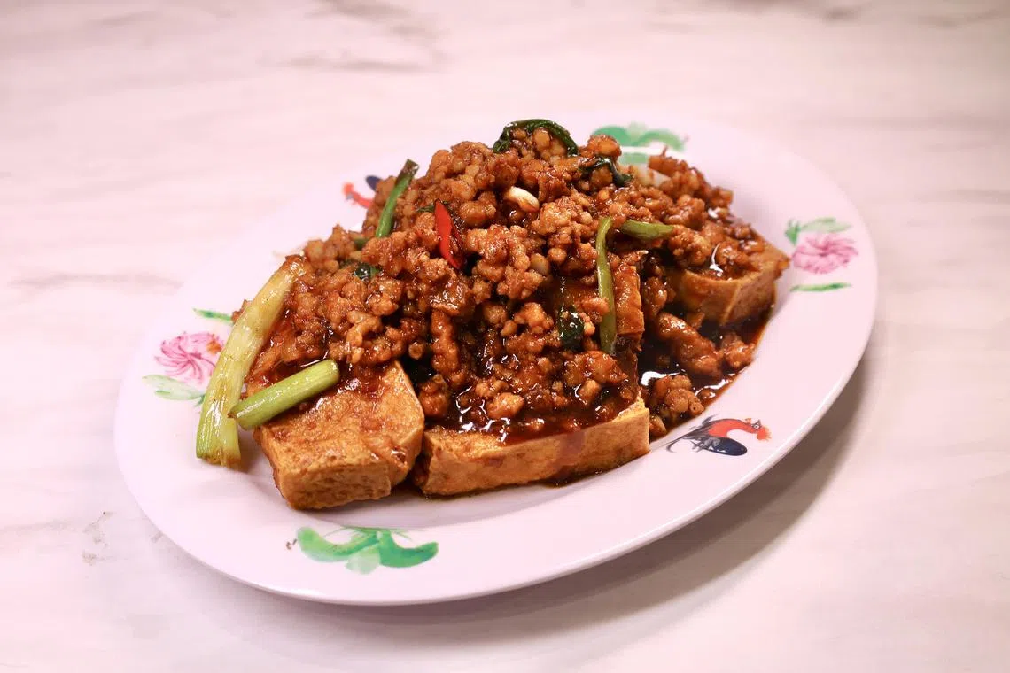A bestseller is Granny’s Tofu ($11 for regular, $16 for large). Deep-fried oblongs of tau kwa are blanketed in a minced pork sauce lifted with fermented black beans and dried sole.