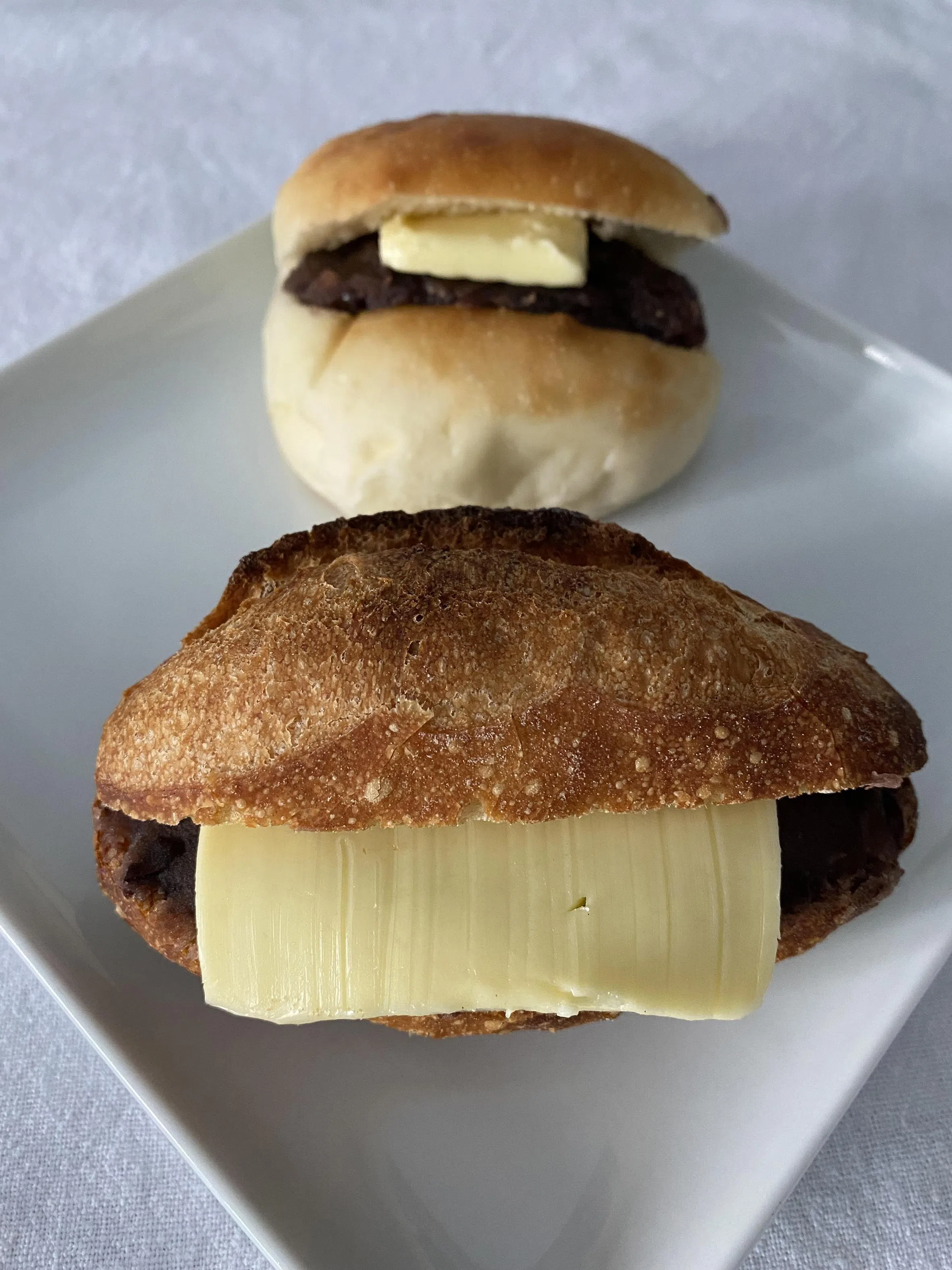 Kamome Bakery’s Red Bean Butter, stuffed into a mini baguette and soft bun.