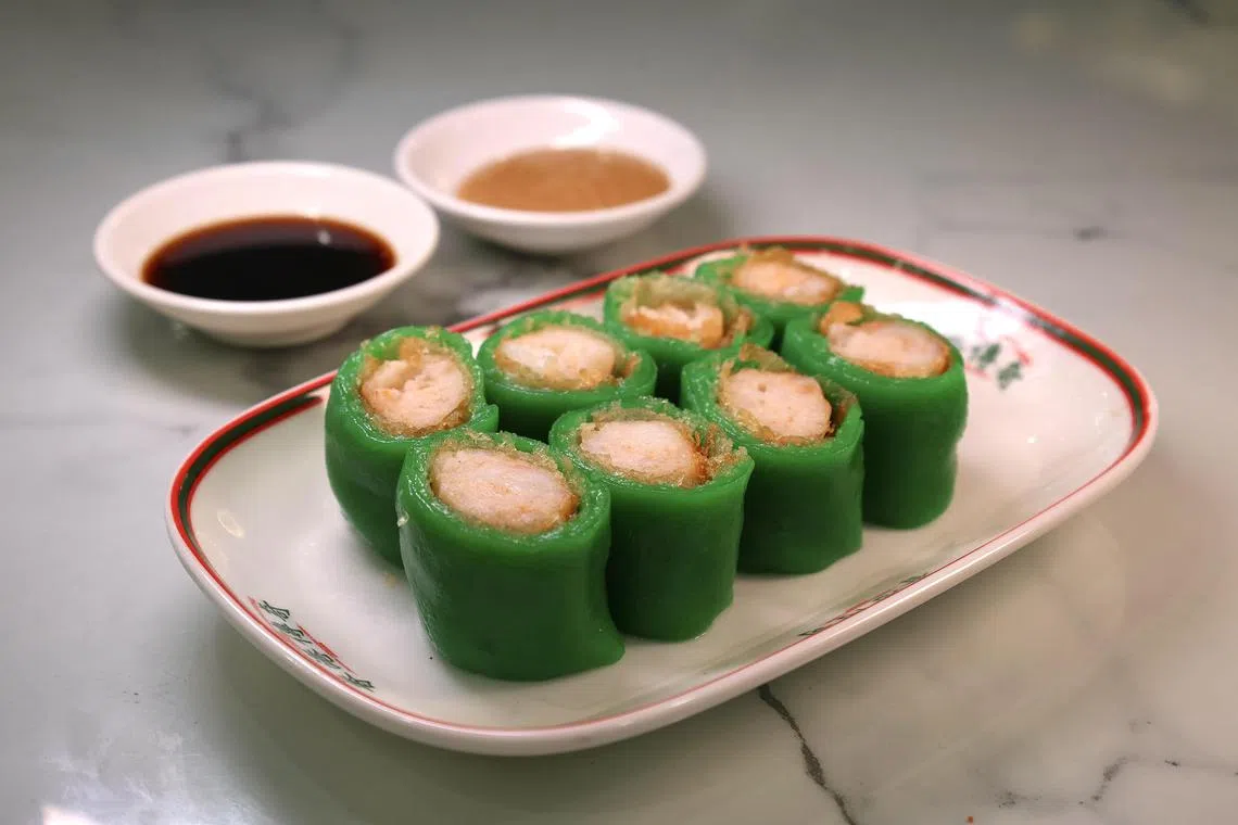 Pandan Rice Rolls With Crispy Prawn Rolls at Legendary Hong Kong.