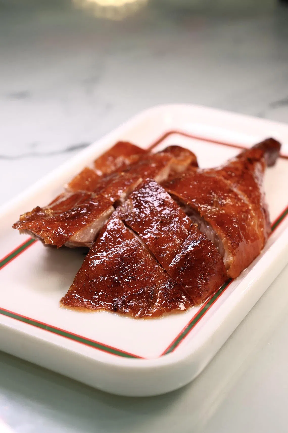 The Legendary Roasted Duck is marinated with over 10 herbs and spices, including star anise, black cardamom, fermented bean paste and seafood sauce, which impart exciting flavour to the meat. Torched before serving, the duck skin is reasonably crispy too. Prices start at $16.80++ a portion, with an additional $3++ for drumstick or breast. Half a duck is $32++, whole is $59++ and a drumstick is $10.80++.