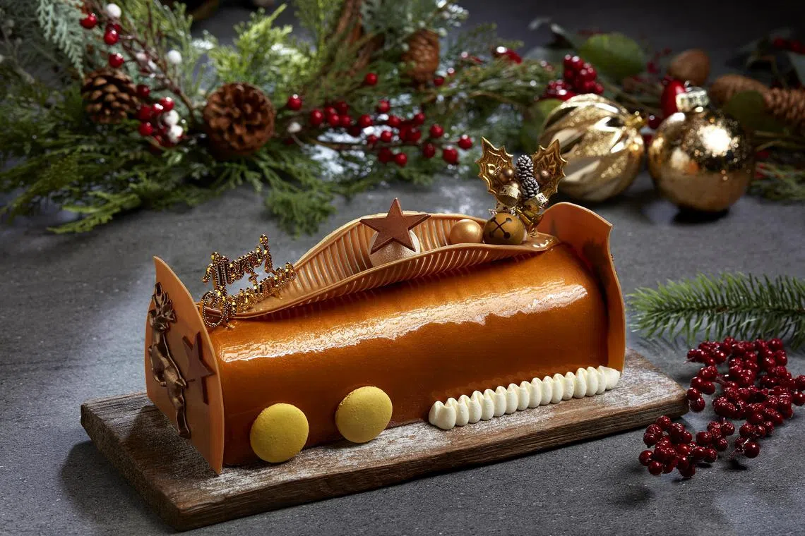 That said, patissiers go all out every year, coming up with flavours and textures that are classic, fanciful and everything in between. Carlton Hotel Singapore went with delicious tropical and Asian accents for its Golden Bird’s Nest Yule Log ($78 for a 1kg cake).