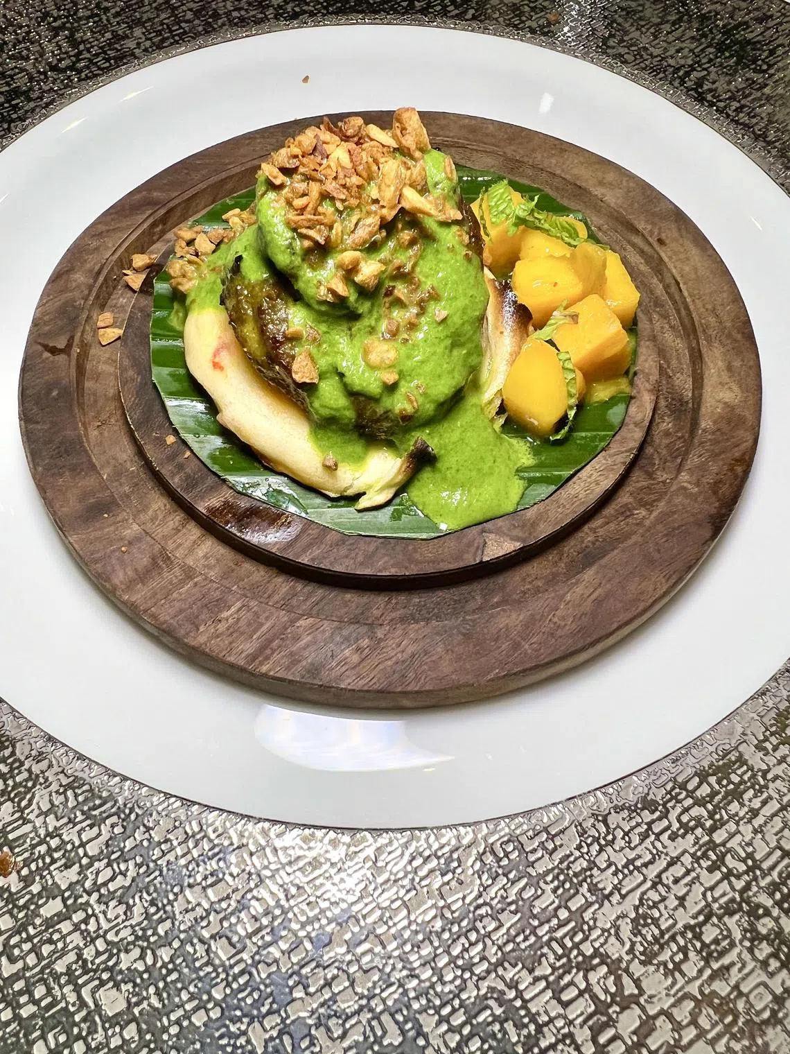 One is stuffed with aged parmesan and goat cheese, while the other comes in banana leaf-wrapped briyani. The rice is paired with a haldi salmon curry and a yogurt-based dish aptly called Hidden Gems, where each spoonful reveals a new surprise of chickpea fritters and papdi crackers.