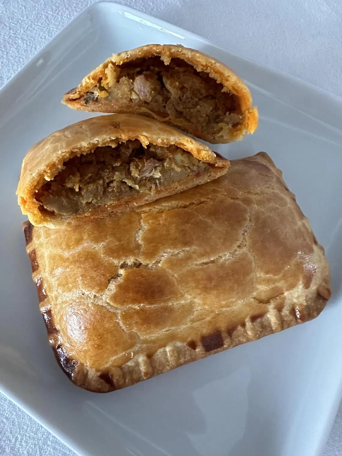 The chicken pieces are also distributed throughout the potato filling and not in one chunk somewhere in the puff. There are no Where’s Wally moments eating it.