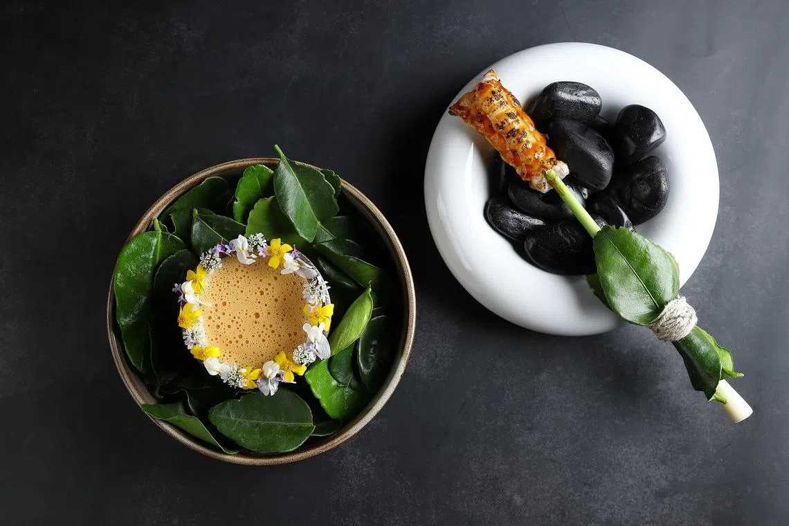 It remains on the refreshed six-course dinner menu ($198++) and is even better now. The soup is served in a glass rimmed with calamansi gel adorned with edible flowers, which adds a layer of flavour and texture to the rich broth.